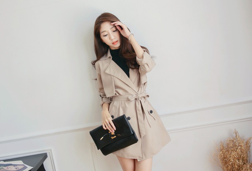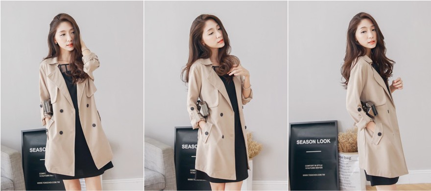 > 附綁帶翻領風衣外套(2色)