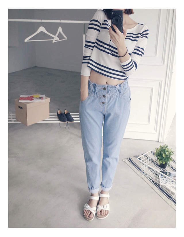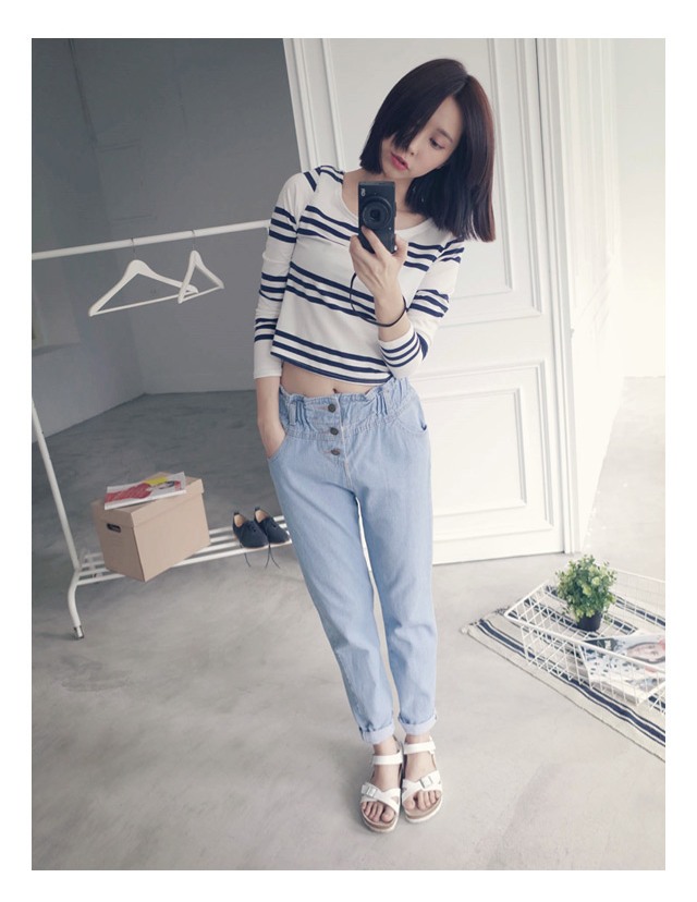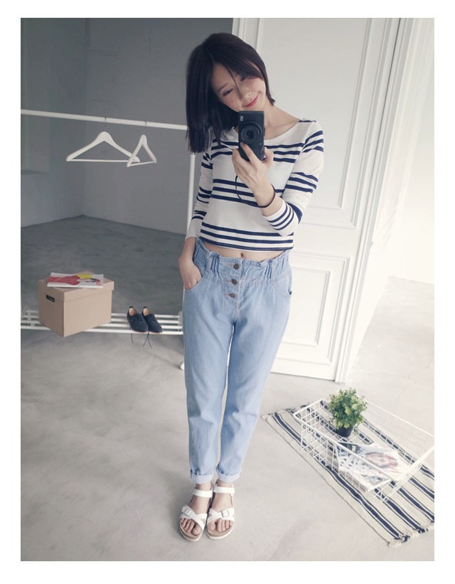 條紋短版棉T
